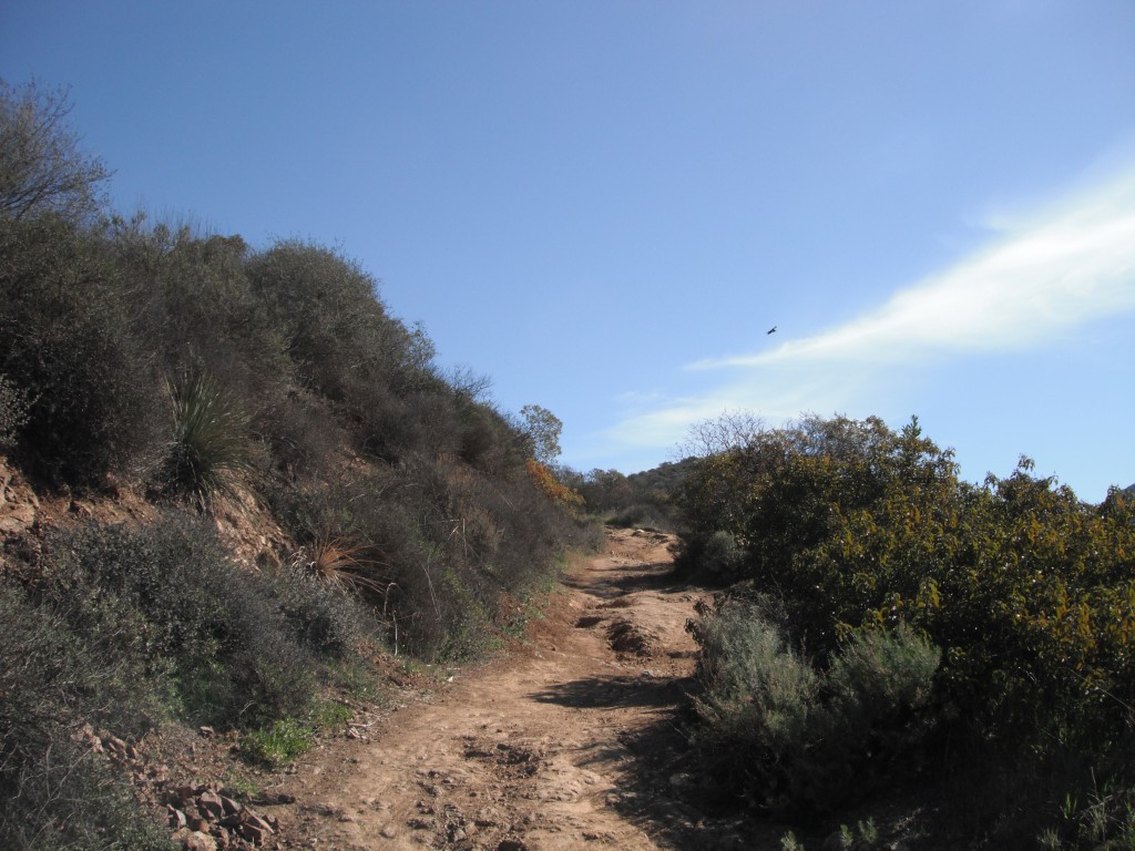 Once you get to the uphill part it will be a nice test of your cardio and balance going up the rocky sections but once you get to the top it will smooth out and give you some decent views. You will notice when you get to the top that it will T off to the left and to the right. If you take the trail to the left you will be going uphill some more but the trail will start to fade away into brush and then you will have to turn around and come back down. If you take the trail to the right you can take some decent singletrack down to some horse property and then you will turn around and come back up. Neither direction is too exciting so maybe you will just want to turn around at the T and hit up the downhill back the way you came.
