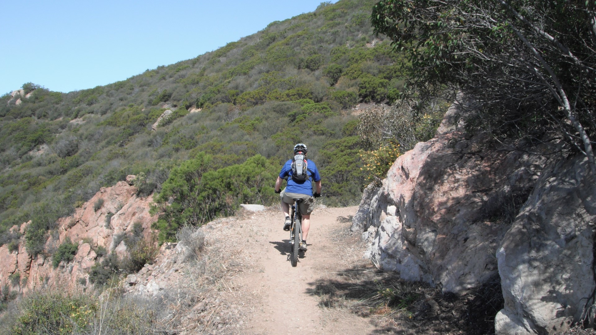 If you like uphill climbs and downhill fun then you will get it in both directions if you do this part of the trail as a there and back ride. The section of Backbone you can take after crossing Yerba Buena is more of a walk and is very rocky. And it can be a little taxing if it's a hot day. Plus you will run into more hikers in this section since there is a trailhead parking lot here.