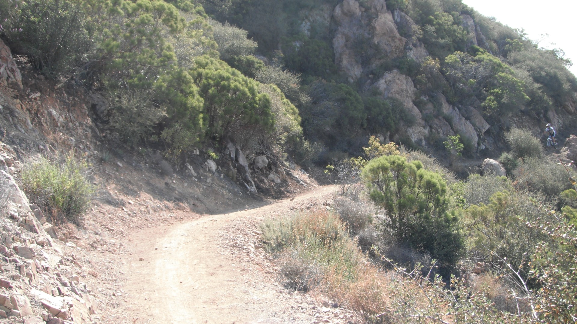 Then there is the final climb to Sandstone Peak. This climb is steeper than it looks and when its hot outside can be a little rough. The trail is covered with loose rock making it slippery to ride or walk up and offers little shade along the way. On the way down it can be fun if you are into navigating loose rocks which some people enjoy. It will eventually clear up making for a faster ride down towards the parking lot.