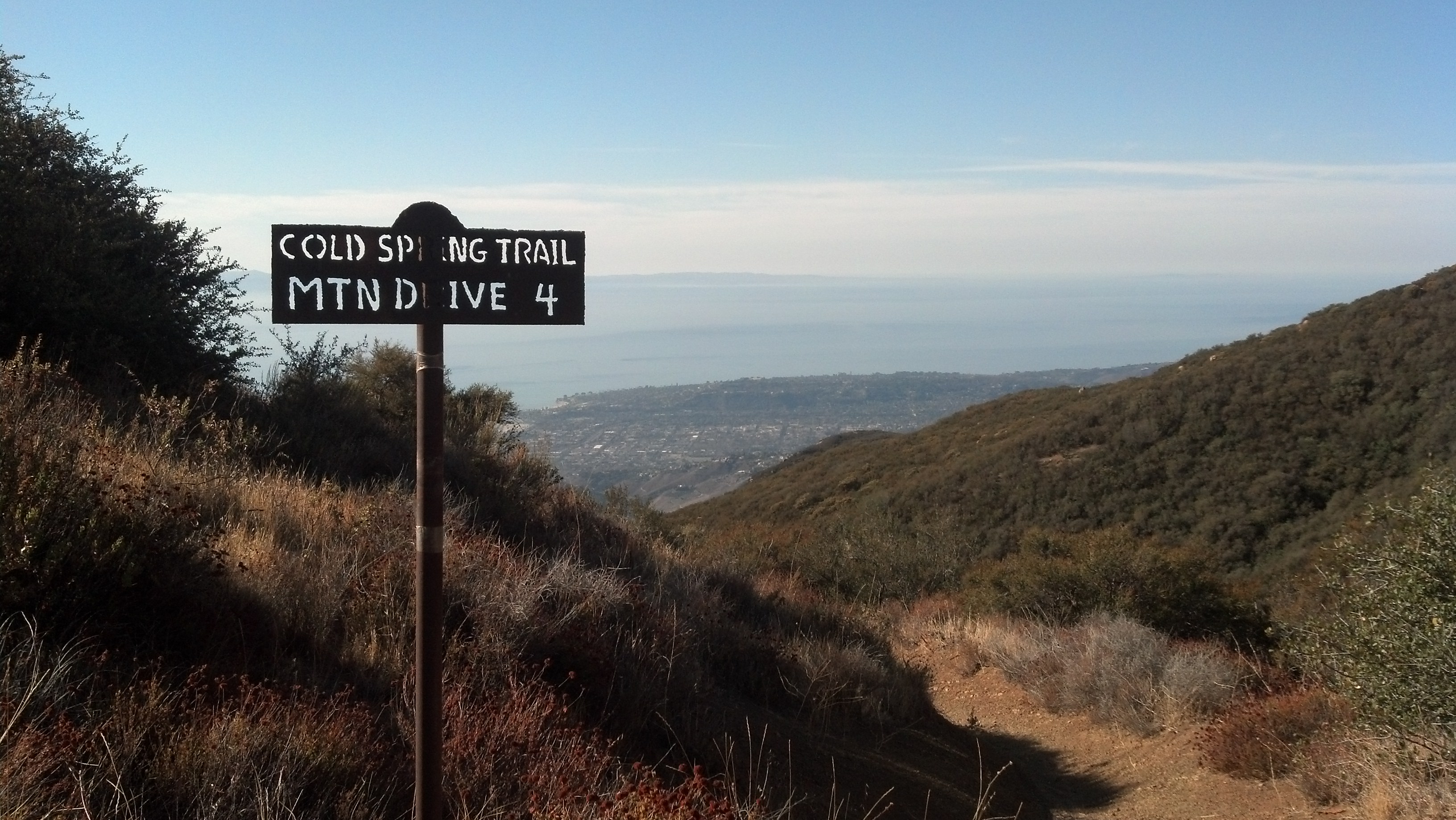 To get to the Cold Spring Trail head out on the 101 Freeway towards Santa Barbara\Montecito and exit on at Olive Mill Rd. Take Olive Mill Rd until and it will become Hot Springs Rd. Then make a left on E Mountain Dr and go up about a mile and there will be a small parking lot on the right which is where you will park the car at the bottom of the run.