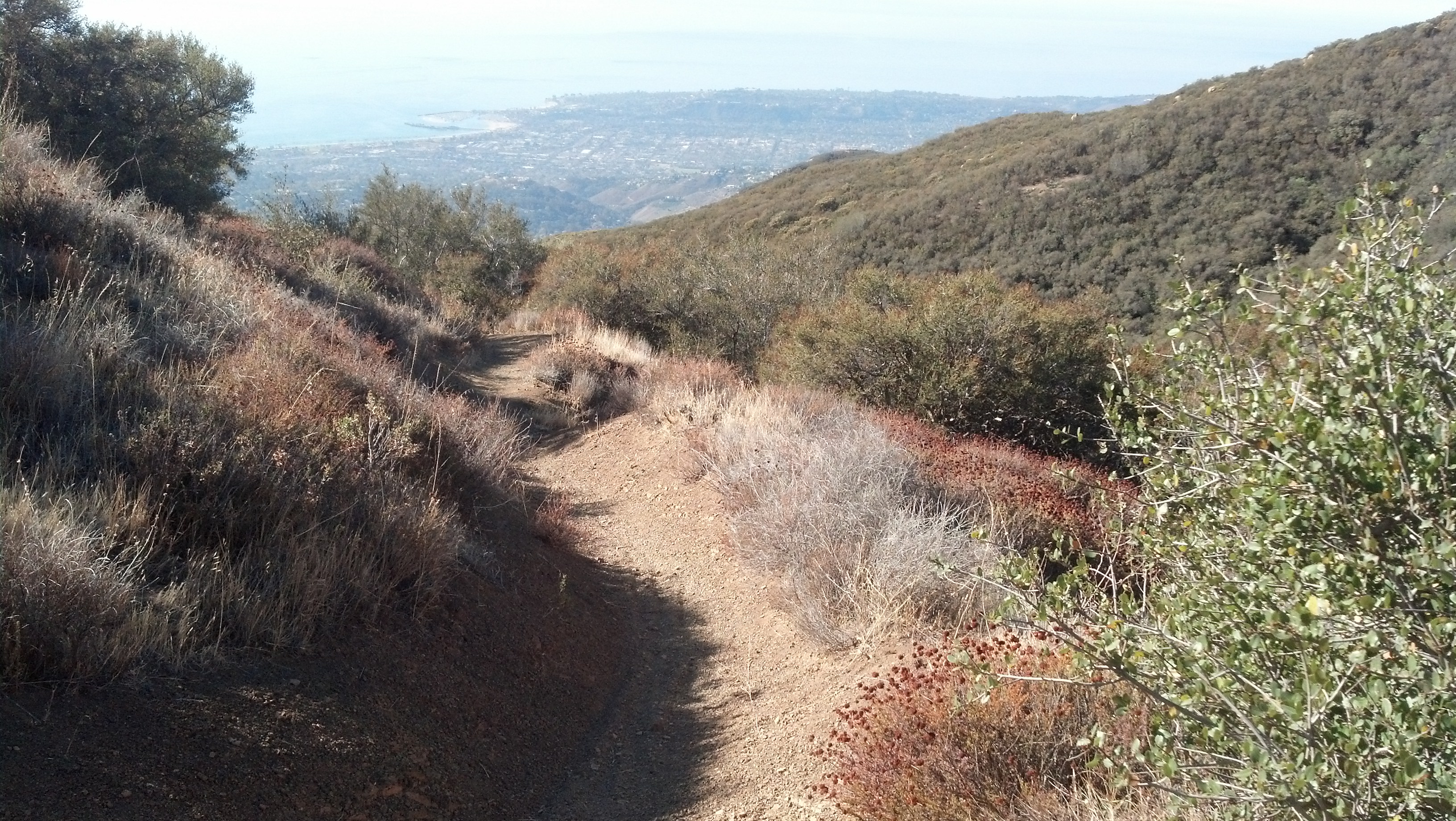 To get to the top for a shuttle continue up E Mountain Dr and take the first left onto Cold Springs Rd. From there make a right onto Sycamore Canyon Rd and then turn right onto Foothill Rd/Stanwood Dr. Next you will make a right onto El Cielito Rd and then a right on Gibralter Rd. Finally you will turn right on E Camino Cielo (which may not be clearly marked) and drive about 3.5 miles to the trailhead which will be on the right and have a dirt parking lot where you can park. There is also a big cement structure above the parking lot making it easy to find. You should check out our map of the trail to see the beginning and ending points to get an idea of where you need to go.