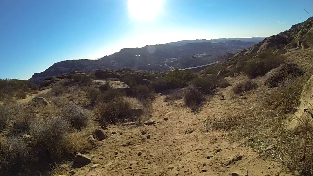 As for the bottom of the trail after you go under the 118 Freeway tunnel you can take a couple of ways back to Corriganville Park. If you keep to the right after the tunnel then that's the easiest way down. Going left will take you over some rocky areas with a couple of nice rock drops. You can park the second car in the Corriganville parking lot which is on Smith Rd off of Kuehner Dr which is the next exit after Rocky Peak going north down the 118. To get back to the top you can just take Santa Susana Pass Rd back up to Rocky Peak Rd.
